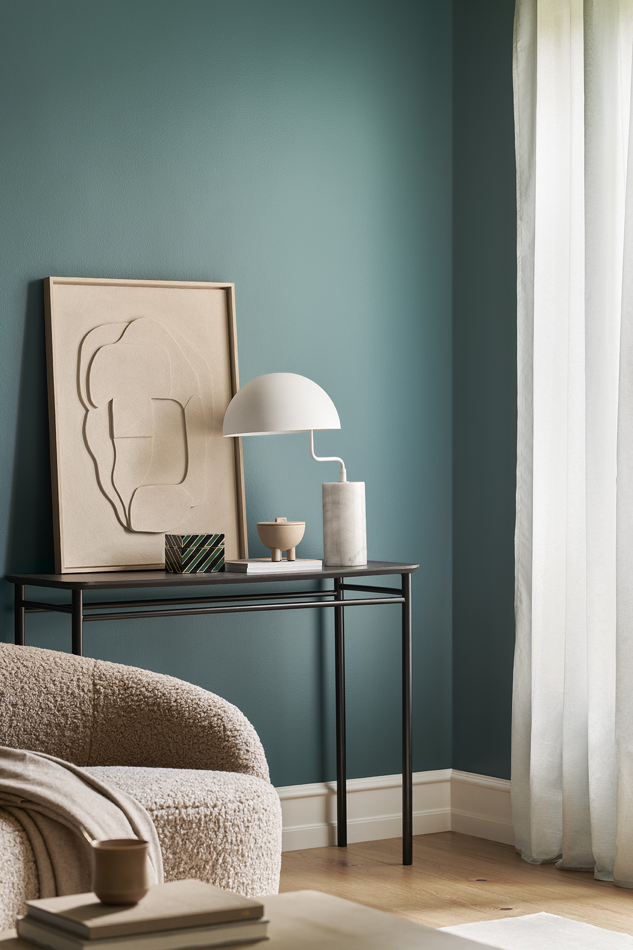 Vining Ivy richiama l’edera rampicante, da cui prende il nome, nel colore - un verde che si tinge di blu e diventa un ottanio profondo - così come nella sua natura: proprio come la pianta, anche il colore scelto da Sigma Coatings per rappresentare il 2023 abbraccia le pareti di casa, in una danza di bellezza e unicità che ben si sposa in ogni ambiente, grazie alla ricchezza della tinta. Ma non solo. Vining Ivy è un inno alla potenza e alla bellezza della natura in ogni sua forma: infatti, il colore intreccia la profondità del blu alla delicatezza del verde, come il mare e le sue onde; le foreste, in cui il verde delle foglie si unisce all’azzurro del cielo; e le gemme più preziose, giada e zaffiro, che raccontano una storia di splendore e unicità.